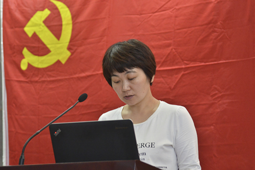 公司黨委直屬支部宣傳委員孫春鳳女士宣貫黨員問責(zé)條例。
