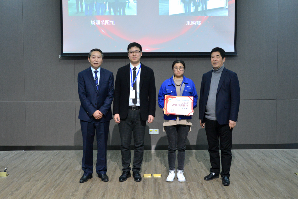 巨人控股副總經(jīng)理高宇為“年度改善之星”、“年度改善優(yōu)秀提案”、“年度改善先進集體”獲得者頒獎