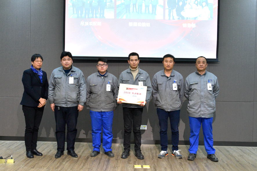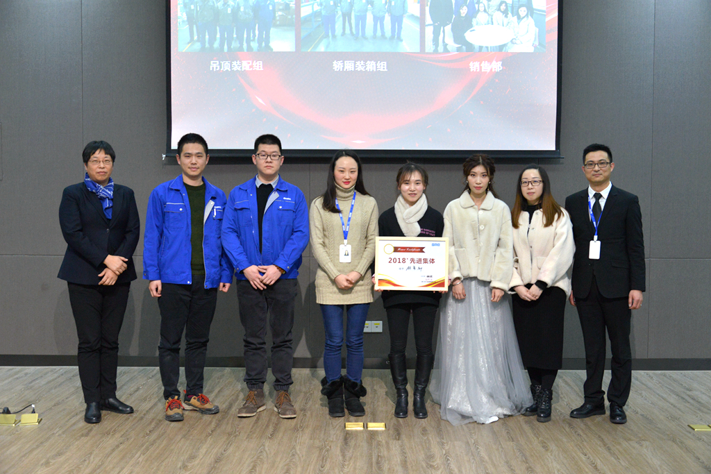 大會授予銷售部、吊頂裝配組、轎廂裝箱組2018年度“先進集體”稱號。銷售部圓滿完成年度銷售任務,為客戶提供優(yōu)質(zhì)服務,獲得客戶信任;吊頂裝配組超額完成年產(chǎn)量目標,勇于承擔新產(chǎn)品上線重任,滿足客戶交期;轎廂裝箱組保質(zhì)保量完成任務,在平凡崗位上做出不平凡的貢獻。