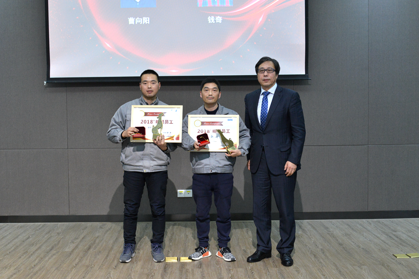 技術(shù)中心曹向陽和生產(chǎn)部錢奇榮獲2018年度“明星員工”榮譽稱號,受到大會表彰。曹向陽提前圓滿完成重大項目,獲得客戶贊揚;錢奇十年堅守同一崗位,成長為經(jīng)驗豐富的多面手,出色完成交貨及時率目標,贏得客戶好評。