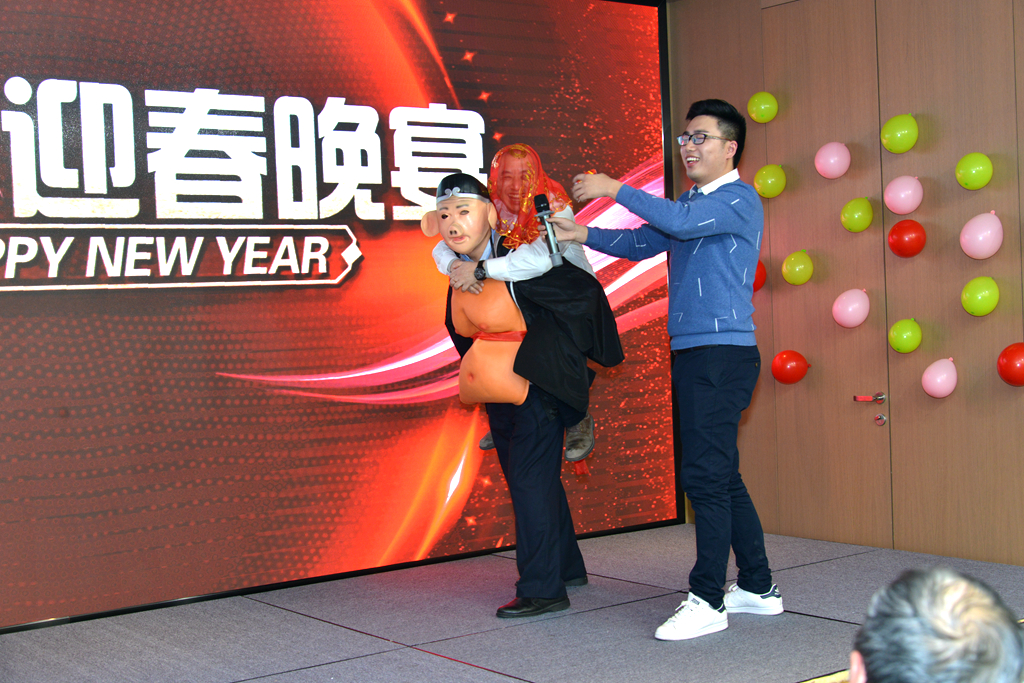 GME迎春晚宴在巨人君瀾酒店隆重舉行,延續(xù)列年來的企業(yè)文化習俗,節(jié)目組策劃了一臺以慶賀豬年為主題的演藝游戲節(jié)目,高管與員工互動搞笑,抽獎紅包不斷,處處洋溢著喜迎豬年的歡聲笑語。