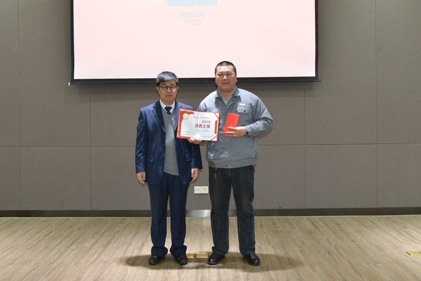 大會(huì)分別對(duì)“優(yōu)秀員工”、“年度改善先進(jìn)集體”和“年度改善之星”進(jìn)行表彰。其中板焊車間以全年改善提案229項(xiàng)、人均提案13項(xiàng)成為“年度改善先進(jìn)集體”。劉海龍以58項(xiàng)改善提案成為2018年度“改善之星”。