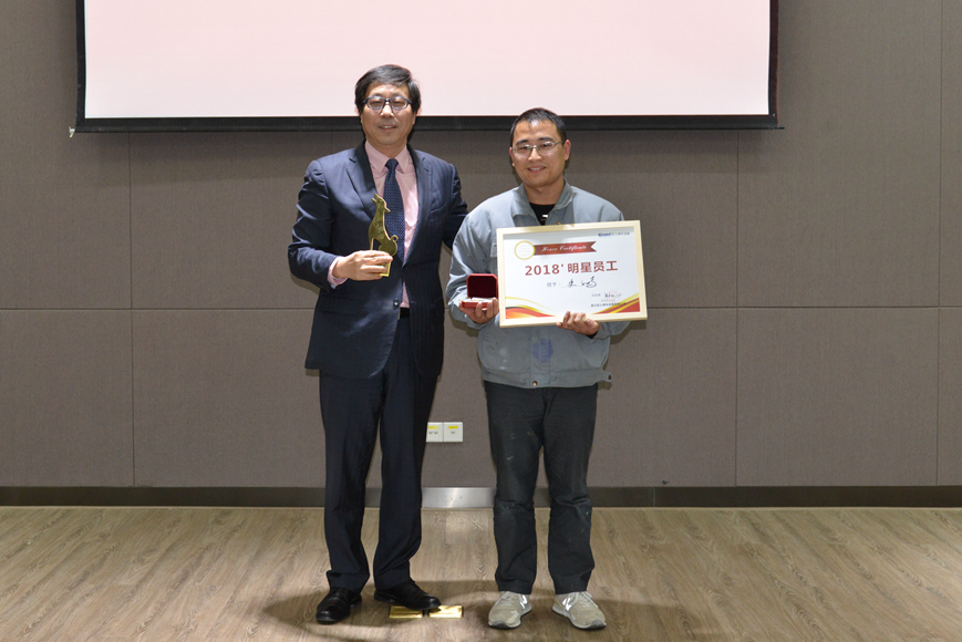 副總經(jīng)理王志武為“年度改善之星”獲得者頒獎(jiǎng)