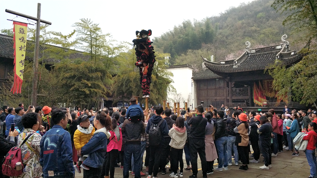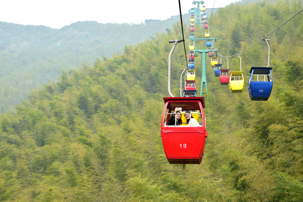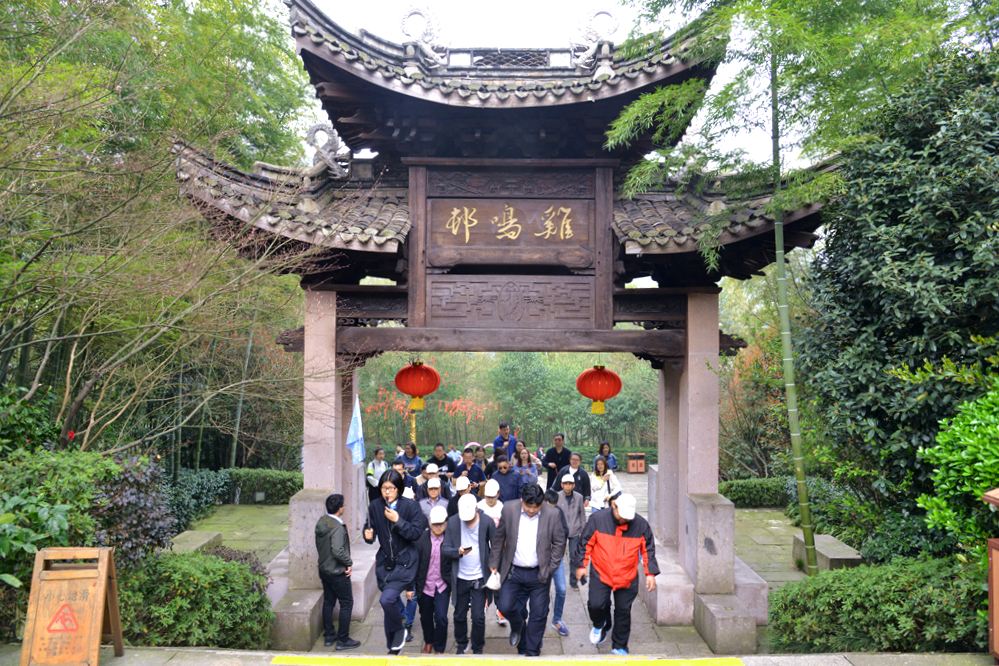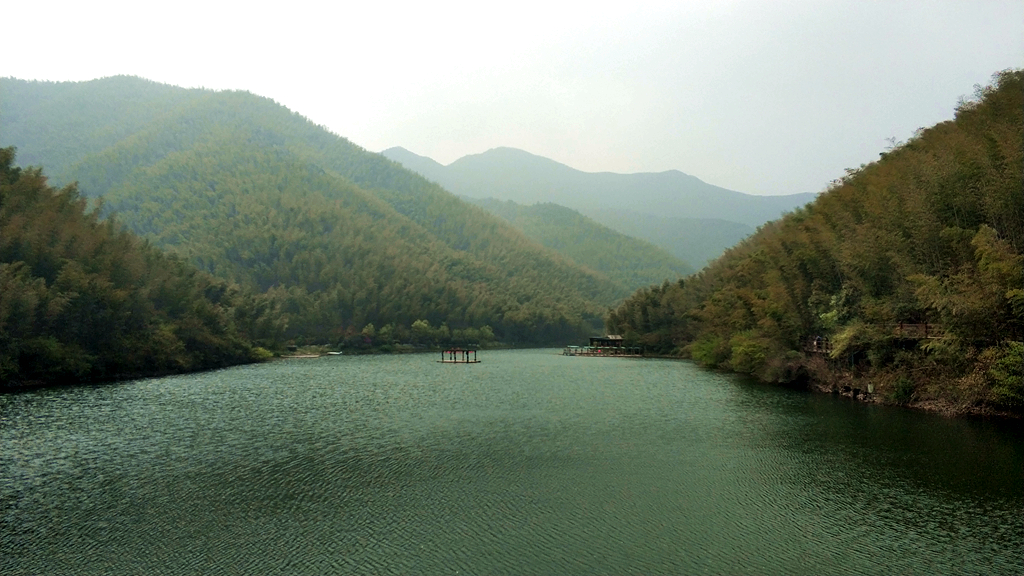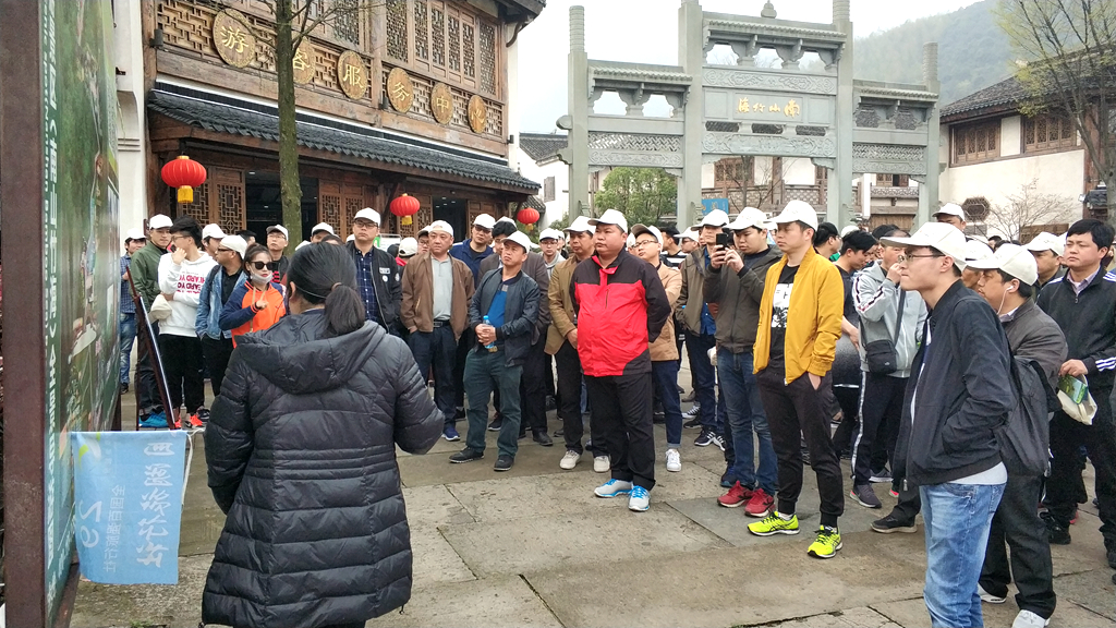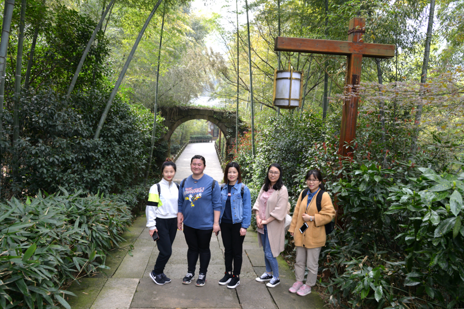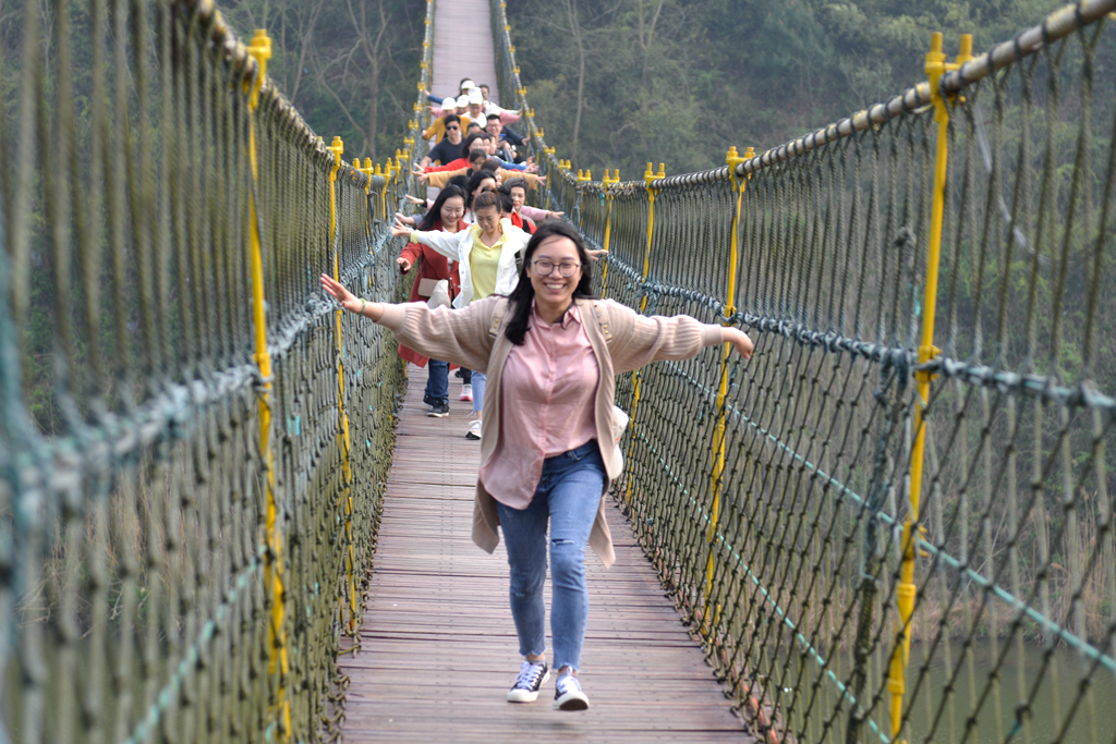 隨著如畫春色徐徐展開,一行人到達旅行的第一站,有著“天堂南山,夢幻竹海”美譽的溧陽南山竹海風(fēng)景區(qū)。一望無際的毛竹倚山抱石,鏡湖巒影中的排排竹筏,山間徑旁的潺潺溪流和形態(tài)各異的竹木小屋,一派古樸、原始、自然的清新意境。蜿蜒的山路并沒有阻止大家向上的腳步,不畏攀登艱勞,努力跨越沿途障礙,收獲了諸多樂趣。
