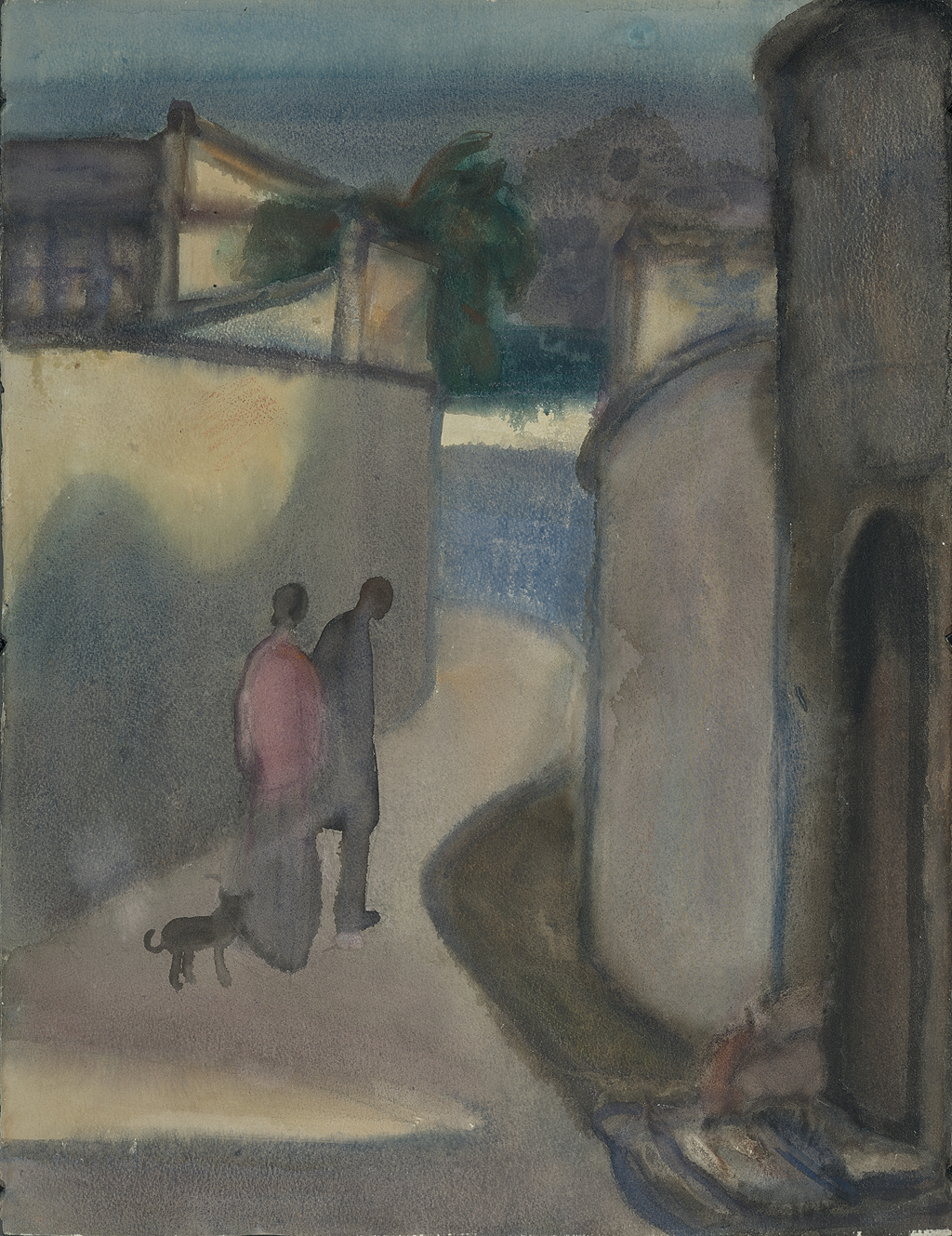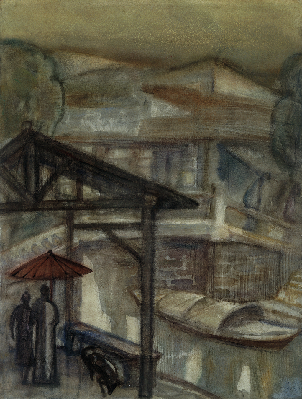 莊弘醒先生,童年生活在民國(guó)時(shí)代的南潯。這里,水光月色下的灰青瓦當(dāng)、故園春色里的茶色欄柵、油紙傘下映輝著的夢(mèng)里故人、斑駁粉墻上蕩漾出的虛空晃影,成為他不盡的鄉(xiāng)愁。這種故鄉(xiāng)情懷是他在水彩中找到獨(dú)特表現(xiàn)的契入點(diǎn),咫尺畫(huà)幅內(nèi)流淌出濃濃的思鄉(xiāng)之緒,它穿越客觀物象,在水色暈染中朦朧地幻化出遠(yuǎn)逝的意境。