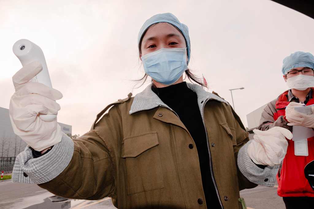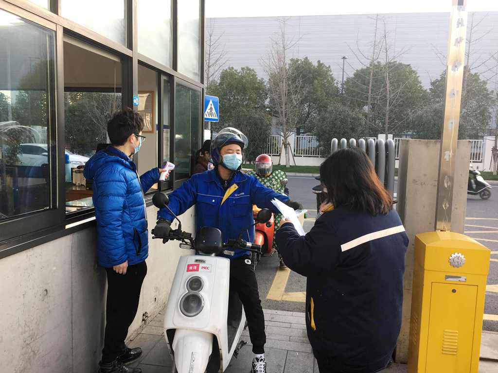 “您好,測(cè)一下體溫。”“請(qǐng)問工號(hào)多少?”“口罩記得戴好”,自2月17日巨人工業(yè)園復(fù)工復(fù)產(chǎn)以來,這些話成了全體員工每天最常聽到的幾句。疫情之下,來自各公司黨支部、工會(huì)、團(tuán)支部和疫情防控領(lǐng)導(dǎo)小組的代表踴躍組成志愿者團(tuán)隊(duì),筑起一扇有溫度的“防疫門”。
