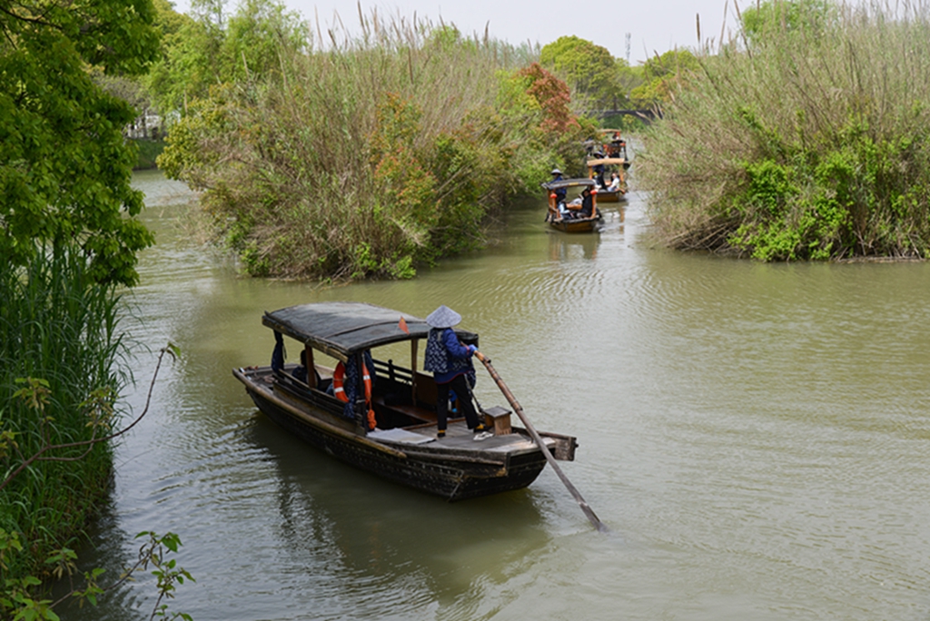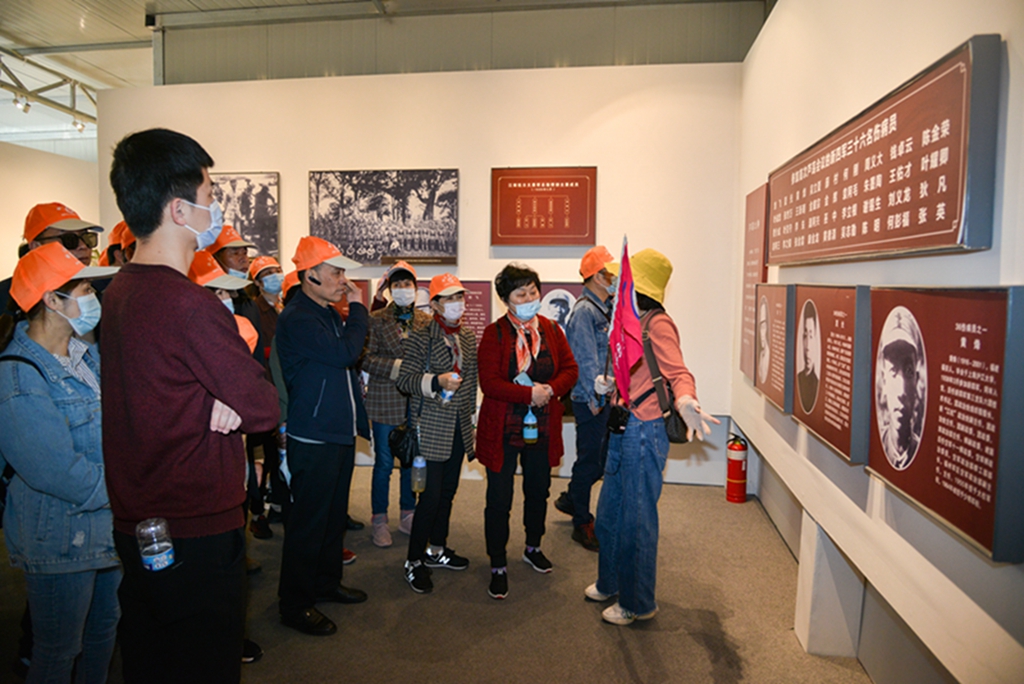 從巨人工業(yè)園出發(fā),一個多小時車程,大家便到達第一站——沙家浜風景區(qū)。眼下河浜縱橫、蘆葦叢生,一派澤國春光景象。因為《蘆蕩火種》和《沙家浜》的故事,這里便成為名聞遐邇的旅游名勝和傳統(tǒng)教育基地,也成為吃貨們的湖鮮天堂。大家徜徉在水天一色的自然風光中,聆聽紀念館講解員的抗戰(zhàn)故事講解,互相合影留念,一路談笑風生,處處蕩漾著此起彼伏的歡聲笑語。
